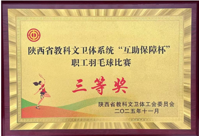 2025年10月30日至11月2日,由陕西省教科文卫体工会主办,西北农林科技大学承办的“中国梦·劳动美——凝心铸魂跟党走 团结奋斗新征程”陕西省教科文卫体系统职工羽毛球比赛在西北农林科技大学举行。我校教职工羽毛球代表队凭借出色的发挥和顽强的拼搏荣获三等奖。