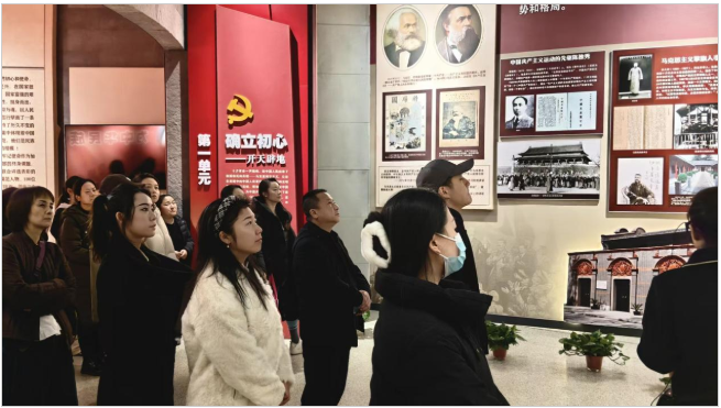 随后,全院教职工前往渭南市博物馆开展红色参观学习活动,重点参观渭南党史相关红色展陈。参观过程中,大家有序驻足、认真聆听讲解,沉浸式回顾渭南地区红色革命历程,深入学习革命先辈的生平事迹与奋斗故事。通过此次红色教育,全体教职工从红色记忆中感悟初心使命、汲取奋进力量,在红色文化熏陶与传统美德浸润中坚定理想信念、厚植家国情怀,在交流探讨中凝聚思想共识,深化了同事间的深厚情谊。