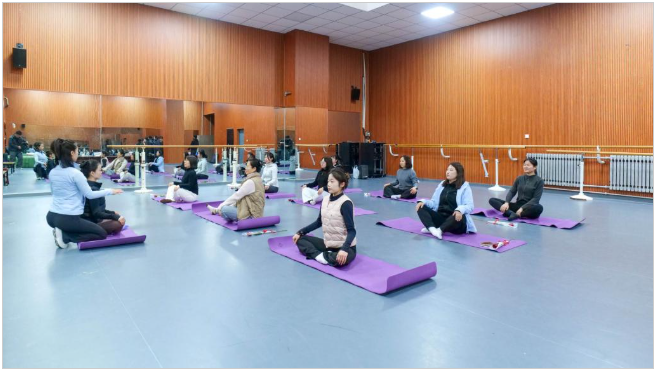 活动在温馨宁静的氛围中拉开帷幕。在专业教师黄璐老师的带领下,参与者身着舒适运动服,伴随着舒缓悠扬的音乐,逐步展开体式练习。从基础的呼吸调整到循序渐进的拉伸与放松,大家在宁静专注的状态中舒展身体、舒缓压力,在一呼一吸间感受内心的平和与力量。