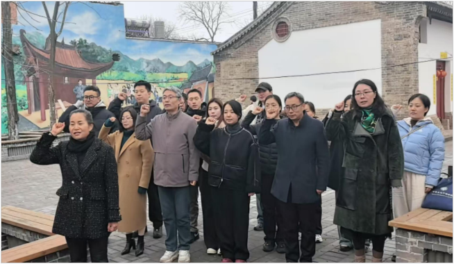 随后,大家走进崇凝革命老区——渭华起义发祥地、陕西省第一个苏维埃政权诞生地,开启红色研学之旅。跟随讲解员的细致讲解,聆听革命先辈的峥嵘奋斗事迹,先后参观崇凝镇老爷庙等革命旧址、走进崇凝村党群服务中心,在斑驳的历史遗迹与鲜活的新时代基层党建阵地间穿梭,开展主题党日活动,重温入党誓词,感悟初心使命,让红色精神在沉浸式学习中赓续传承。参观结束后,大家畅谈心得、分享收获,在思想的碰撞与交流中坚定信念、强化担当、砥砺奋斗。